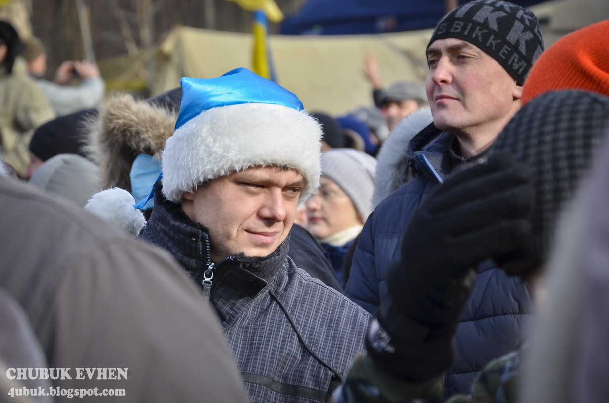 Кордон КАМАЗів на Садовій (вверх по Інститутській). Спочатку бажаючі могли посидіти на вільному від ВВшників кузові.